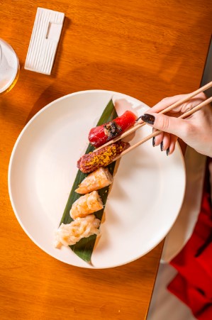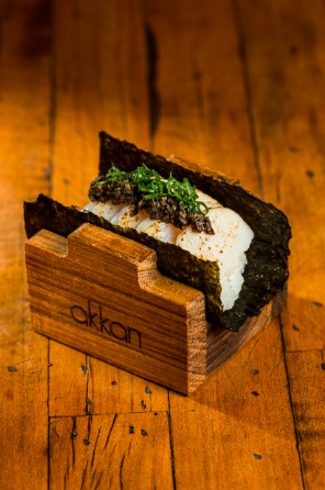 Localizado em Pinheiros e com inspiração nova-iorquina, o restaurante japonês Akkan é casual especializado em leituras quentes da cozinha japonesa. Para o Dia do Sushi a sugestão do chef Fábio Shinagava é a especialidade da casa o Grab hand roll especial de vieira com trufas (R$ 34).