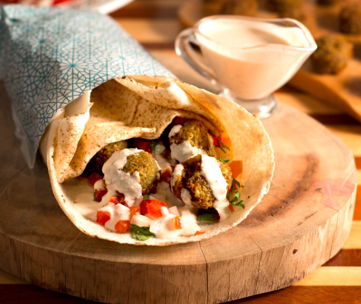 Dedicada à culinária árabe, o restaurante Arabia tem diversas opções veganas como a Esfiha de Zaatar (R$19), um disco de massa assado com azeite e mix de especiarias, e a Esfiha de Ricota ou de Verdura (R$12). Há também o Sanduíche de Falafel (R$49), que combina bolinhos de falafel, cebola, tomate, salsinha e molho tarator, tudo isso enrolado no pão árabe. Já o Trigo com Lentilhas (R$77), que tem um leve toque de pimenta síria, é decorado com cebolas caramelizadas e nozes e acompanha coalhada com pepino.