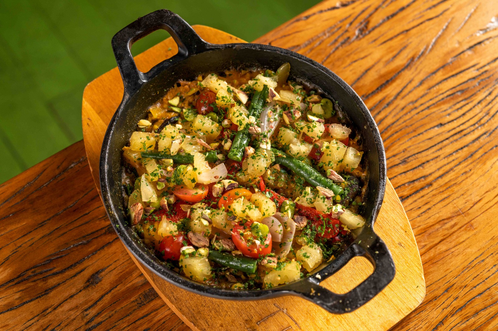 Com cozinha ibérica e de cardápio dedicado aos frutos do mar, O Tuy Cocina também traz opções para vegetarianos e veganos. Entre as boas pedidas para petiscar estão as Batatas Bravas (R$59,90), uma porção de batatas rústicas com molho bravo e aioli. Dos pratos, o Arroz Vegano (R$99,90) é um arroz espanhol com abóbora, cogumelos, açafrão, amêndoas, cebola roxa, pimentão piquillo, vagem e abacaxi cremona.
