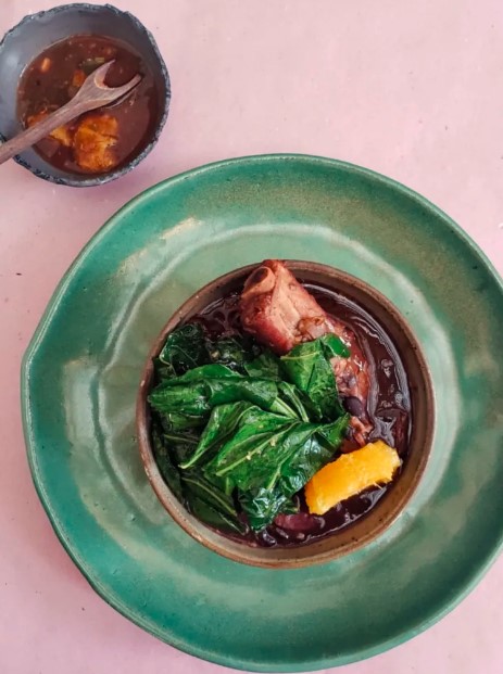 A Feijoada do restaurante Muquifo, da chef Renata Vanzetto é servida apenas no primeiro sábado de cada mês. O prato custa R$ 85 e vem acompanhado de arroz branco, fatia de laranja, vinagrete, farofa, banana empanada e couve refogada.
