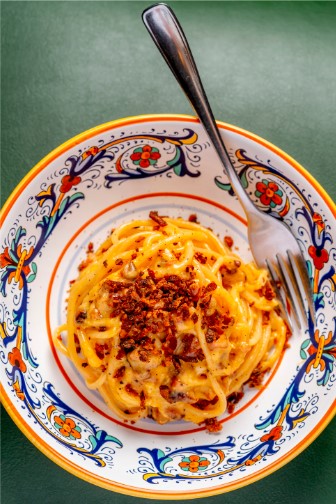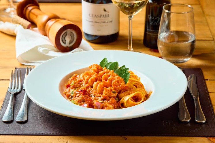 O restaurante comando pelo restauranteur Juscelino Pereira tem no cardápio Spaghetti alla Carbonara R$ 118), Spaghetti All’Amatriciana (R$ 115), Rigatoni com pesto de rúcula, pistache e burrata (R$ 112), Linguini com Camarões, lulas, polvo e molho de tomate fresco R$ 168, Ravioli di Fontina alla Crema di Tartufo Nero (R$ 120), Pasta e Piselli, Tagliatelle de carne com fonduta de parmesão, pancetta e ervilhas frescas (R$ 112)