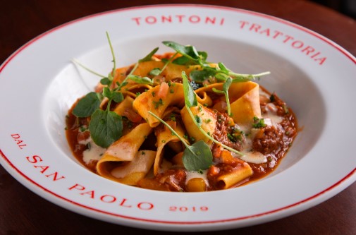 Com clima intimista e descolado, o TonToni, a autêntica Trattoria do chef Gustavo Rozzino, oferece uma Papardelle Al Ragu Di Costole Di Manzo com molho pomodoro com carne braseada, seu caldo de cottura, creme de parmesão & tartufo (R$77).