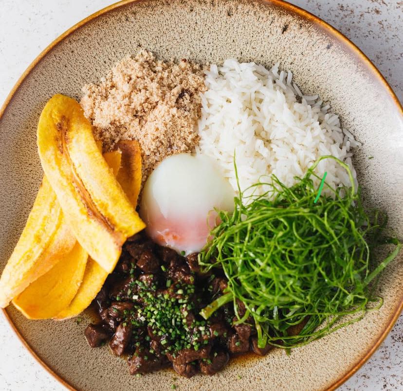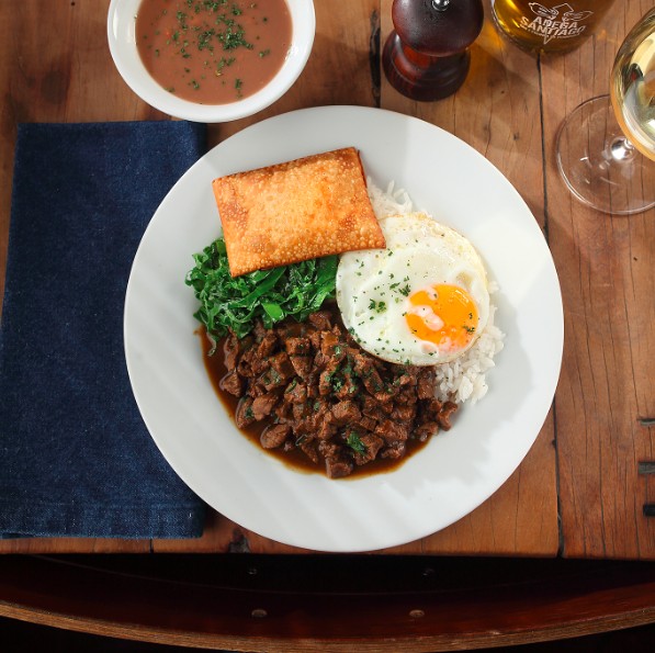 Com cozinha comandada pelo chef Luiz Vieira, o bar e restaurante Mercearia Amauri oferece um cardápio executivo em dois formatos. Pelo mesmo valor, R$ 69,90, o cliente pode selecionar uma opção entre cinco proteínas (peixe branco, sobrecoxa de frango desossada, file à milanesa e Paillard ou entrecôte de mignon) e dois acompanhamentos (arroz, feijão, farofa bacon, batata ao murro, brócolis grelhado, mix de vegetais e linguine com três opções de molho). Ou optar pelo “prato do dia” como Picadinho de mignon com farofa, arroz, vinagrete e ovo perfeito (foto), as quintas, ou moqueca com arroz, fritas e banana frita. Em ambos, saladinha e sobremesa do dia inclusos.