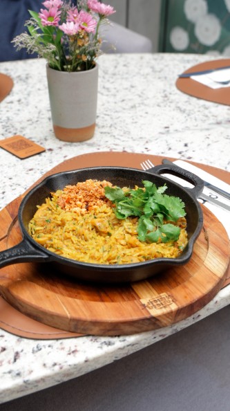 Inaugurado recentemente no Jardins, o Kureiji, restaurante do chef Adriano Kanashiro serve na hora do almoço o Hiru-Gohan. O executivo da casa, servido de terça a sexta-feira, das 12h às 15h, inclui entrada e principal, sendo cobrado o valor do principal. De entrada pode-se escolher entre quatro opções: Kaiso Sarada, com folhas e algas; o Tempurá do dia; o Kimchi ou o Burajiru Missoshiru, que leva tucupi e mandioquinha. Em seguida, pode-se optar entre sete sugestões de principais como o Mapará Yaki (R$81), filé de mapará grelhado com teriyaki de jambu, mix de legumes e servido com Gohan; Burisuketto (R$95), brisket black angus cozido com shoyu e gengibre, mix de tubérculos brasileiros e gohan, além de sugestões veganas ou Okinawa Sobá (R$76), que leva soba de shisô e nirá com seleção de legumes e cogumelos. Há sugestões de sobremesa como a Matcha Panacota (R$35), panacota de matcha servida com compota de açaí e yuzu, e os sorvetes feitos na casa (R$14, um sabor e R$26, dois sabores), que vão do tradicional chocolate até curiosos como o de abacaxi com shisô e o matcha com pistache.