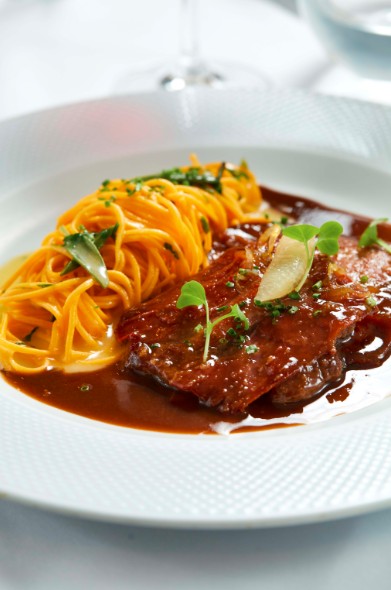 Sob o comando do chef Daniel Ricciardi, o restaurante italiano Grotta Cucina também oferece menu executivo durante a semana com entrada e sobremesa do dia inclusas no valor do prato principal. Dentre as sugestões Pisa (lasagna al ragu com ricotta, Parmigiano Reggiano, fonduta trufada e demi glace, R$93).