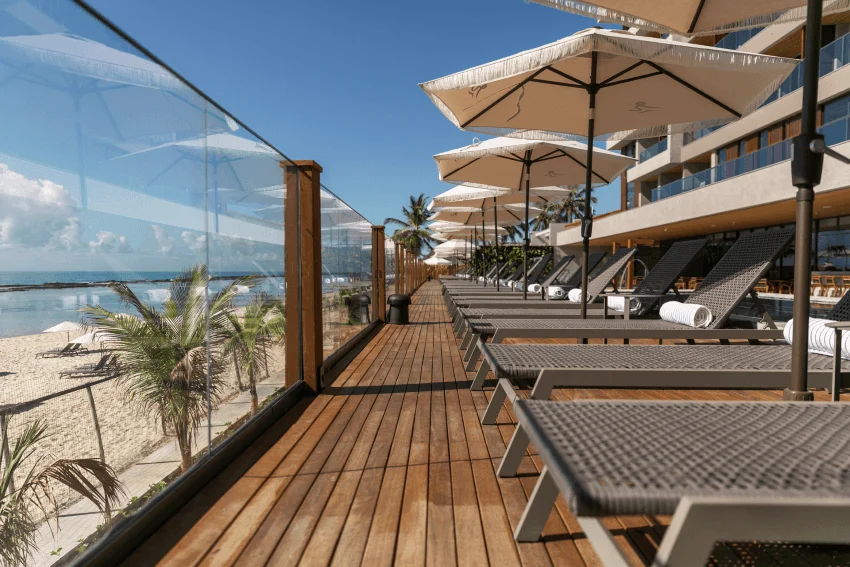 No litoral de Alagoas, o Ritz Barra de São Miguel se posiciona como opção de alto padrão à beira-mar, com foco em bem-estar e serviço personalizado. A estrutura inclui piscinas, spa, restaurante e acesso direto à praia, além de experiências como café da manhã flutuante e piqueniques. As diárias partem de R$ 2.339 para duas pessoas, com café da manhã. Reservas e informações através do telefone (82) 2121.4001 ou e-mail reservas@ritzbsm.com.br.