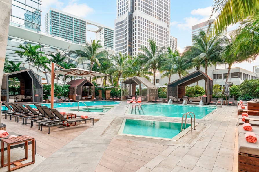 No EAST Miami, localizado em Brickell, cada detalhe reflete um compromisso genuíno com a sustentabilidade, a comunidade e o bem-estar dos hóspedes (o Alt Luxury). Todos os quartos são equipados com torneiras de água potável filtrada, uma solução inteligente que elimina a necessidade de garrafas plásticas, oferecendo uma alternativa limpa, prática e ambientalmente responsável. O hotel também adota tecnologia de ponta para reduzir o desperdício de alimentos. Dois digestores anaeróbios instalados no local decompõem completamente os resíduos orgânicos gerados pelo restaurante Quinto, permitindo seu descarte seguro através do sistema de encanamento inteligente. Essa prática não apenas evita o acúmulo de lixo, mas também reduz a circulação de caminhões de transporte, diminuindo significativamente as emissões de carbono. A gestão eficiente dos recursos hídricos é outro pilar essencial. Um sistema inteligente de bombas regula a pressão da água, prevenindo perdas por vazamentos e danos, enquanto a coleta de água da chuva abastece a torre de resfriamento e irriga as áreas verdes, promovendo ainda mais economia e sustentabilidade.