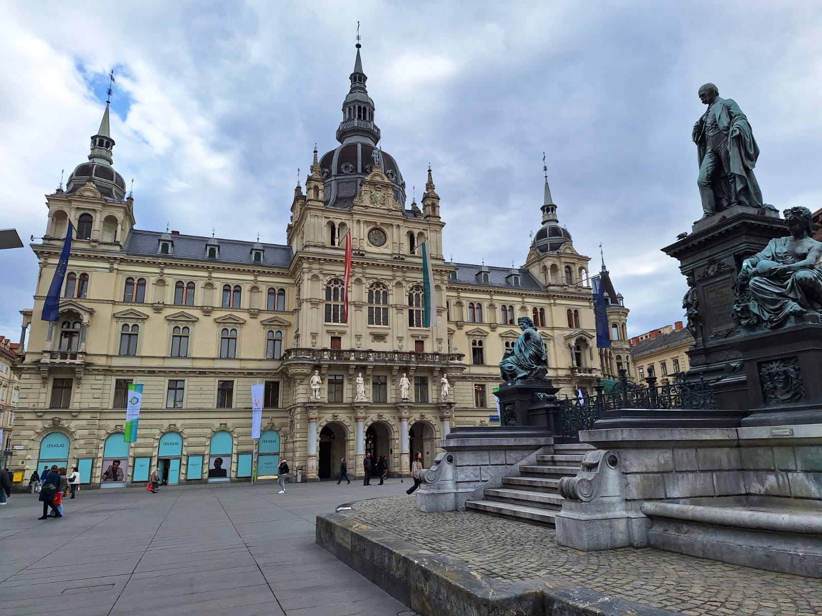 E nas ruas adjacentes à praça, a gente topa com mais algumas construções históricas como, por exemplo, o Palácio Khuenburg. Antigo Palácio da Cidade que atualmente afunciona como o Museu Graz, e que foi o local de nascimento do Arquiduque Ferdinand, assassinato em 28 de junho de 1914, fato que mudou o rumo da história e é considerado o estopim para o início da Primeira Guerra Mundial.