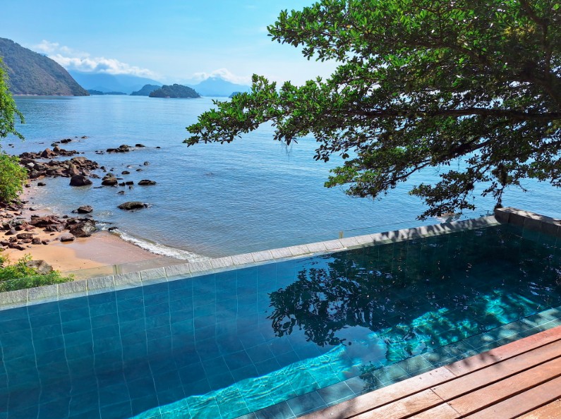 5. Infinity pool de frente para o mar: Por fim, a piscina climatizada de borda infinita debruçada sobre o mar faz a gente esquecer da vida. Dá pra passar horas ali. O deck com espreguiçadeiras fica numa área rodeada de verde, onde o som das ondas dita o ritmo. Logo ao lado fica o Spa da pousada. Mas a piscina já é tão relaxante que a gente sai de lá anestesiada…