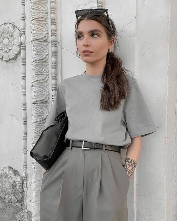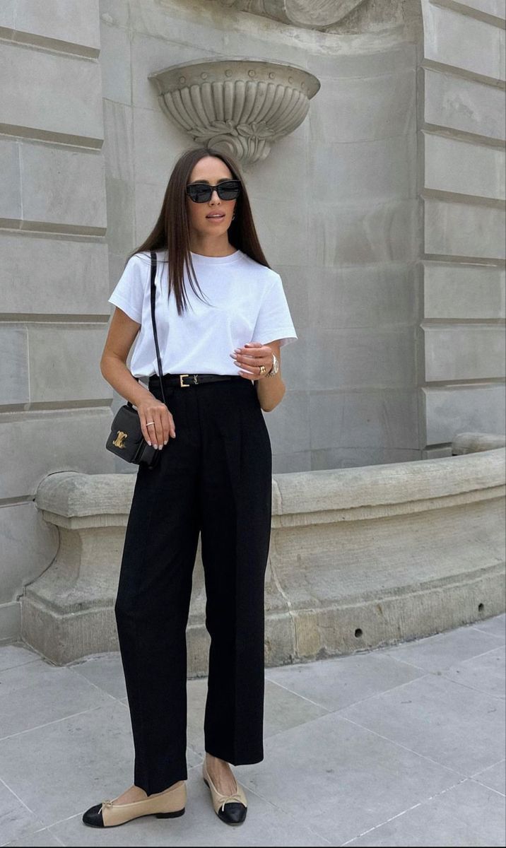 • Calça de Alfaiataria: Combine sua camiseta básica com uma calça de alfaiataria. Essa combinação traz um contraste interessante entre o casual e o formal, resultando em um look moderno e elegante.