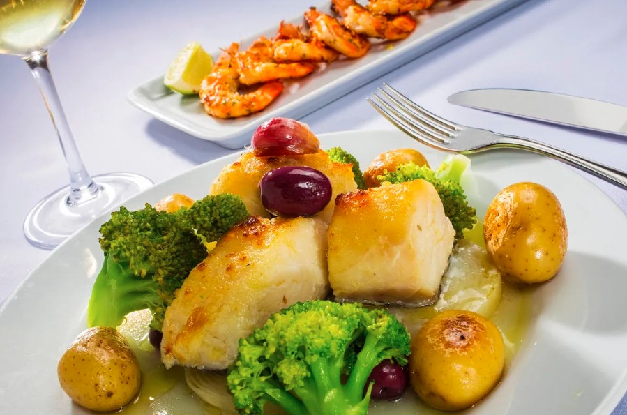O restaurante Dinho’s, comandado pelo chef Paulo Zegaib, sugere o Bacalhau Porto Imperial (R$ 235), confitado no azeite e assado com batatas, brócolis, cebola e azeitonas. O prato pode ser pedido na unidade do restaurante nos Jardins e no Paraíso, onde divide espaço com outras sugestões no bufê de almoço.