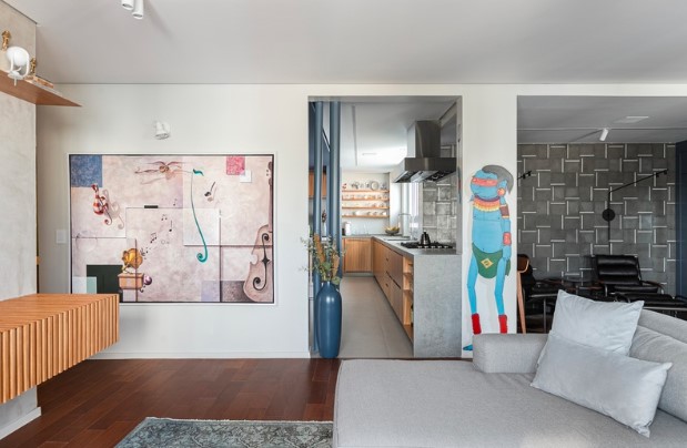 Natália Salla, conhecida por sua habilidade em criar ambientes que equilibram estética e funcionalidade, encarou o desafio de revitalizar um apartamento de 50 anos, que nunca havia passado por uma reforma. A obra envolveu intervenções estruturais complexas, como reforços metálicos para suportar o peso de uma banheira e de um spa na varanda, além da impermeabilização da área externa, dificultada pelas constantes chuvas.
