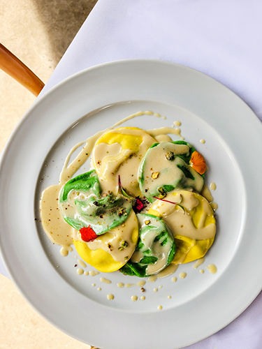 Entre as ótimas massas do restaurante especializado em cozinha italiana do sul da Itália, está a deliciosa Raviolini Pera e Gorgonzola (massa recheada de pera e nozes, molho de gorgonzola dolce italiana e pistache, R$ 75, foto). Risotos também são bem procurados como o Anatra I Zucca (com ragu de pato e abóbora, R$ 89).
