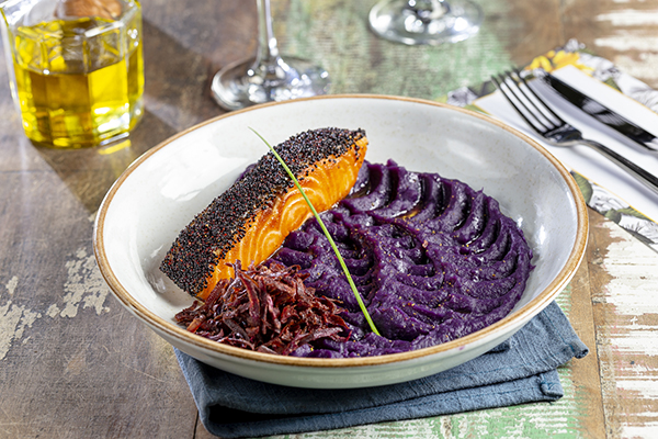 Para almoçar ou jantar, continua a variedade de opções low como o low carb Salmão com Crosta de Quinoa e Pure de Batata Doce Roxa (R$ 75, FOTO), carnes como Filet do chef (Medalhão grelhado com carpaccio de pera ao vinho e queijo brie derretido, acompanhado de risoto cremoso de parmesão ao molho de vinho tinto, R$ 81, ) e risotos, como o de polvo (arroz negro com os tentáculos de polvo, mais creme cítrico e ervilhas, R$ 85). Sobremesas também seguem a releitura, a exemplo dos Dadinhos de tapioca aqui servidos com doce de leite, sorvete de vanilla e morangos (R$ 44). Segue também o almoço executivo (R$ 64 e R$ 84, com taça de vinho) com salada e sobremesa oferecendo onze sugestões de principais como Polvo à lagareiro, Picadinho da casa (foto), Moqueca de palmito com banana da terra e Arroz de camarão com linguiça artesanal.