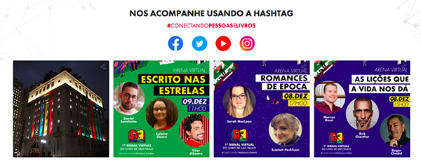 Este ano as palestras que têm como temas centrais o racismo e o empoderamento feminino, estão disponíveis na plataforma até o dia 13 de janeiro. Entre os nomes previstos na programação do espaço chamado Arena Virtual, Verônica Oliveira, Mauricio de Sousa, Raphael Montes, Nara Bueno, Claudia Raia, Isabela Freitas, Leandro Karnal, Monja Cohen e Mário Sergio Cortella.