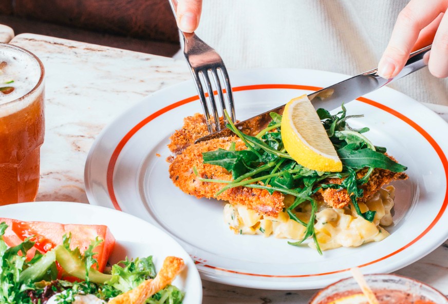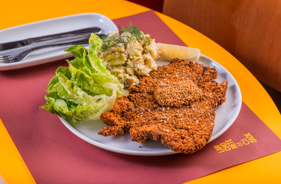 Inspirada nas brasseries francesas, como são chamadas as pequenas cervejarias que servem refeições rápidas, o ICI Brasserie serve o Schnitzel de Porco & Salada de Batata (R$ 89), uma suculenta milanesa de porco servida com salada de batata e rúcula selvagem.