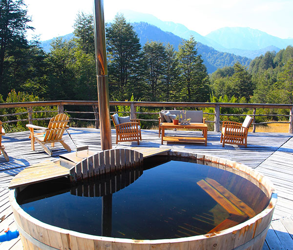 Localizado em mais de 300 hectares de uma região selvagem chilena, o Peuma Lodge Patagonia oferece um lugar aconchegante para se hospedar no coração do Vale de Futaleufú, ao norte da Patagônia. Ao se hospedar neste chalé, o viajante não pode deixar de tomar um banho na banheira de hidromassagem, que fica no terraço ao ar livre da propriedade. A vista panorâmica e o ar fresco atraem especialmente quem busca uma hospedagem relaxante.