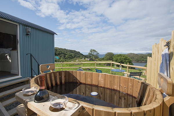 Localizado em Nedd, um pequeno vilarejo próximo à nascente noroeste do Lago Nedd na Escócia, este confortável chalé dispõe de pequenas cabanas portáteis independentes, com uma bela vista das montanhas e do mar. Ali, os hóspedes podem aproveitar as banheiras de hidromassagem ao ar livre, aquecidas por um fogão a lenha. O calor da água, junto com a vista e o ar fresco, oferecem uma oportunidade de relaxar nas terras altas da Escócia.