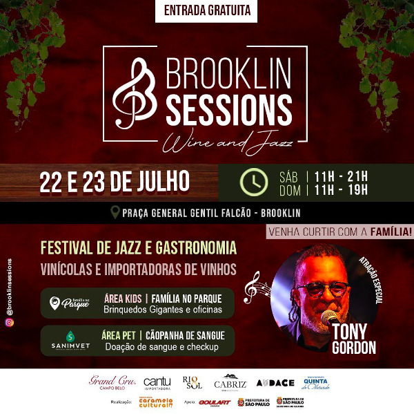 Nos próximos dias 22 e 23 de julho, a Caramelo Cultural traz o Brooklin Session Wine and Jazz, uma grande festa ao livre com entrada gratuita, feira gastronômica, show especial com Tony Gordon, atividades para as crianças, música, degustação de vinhos e empórios.