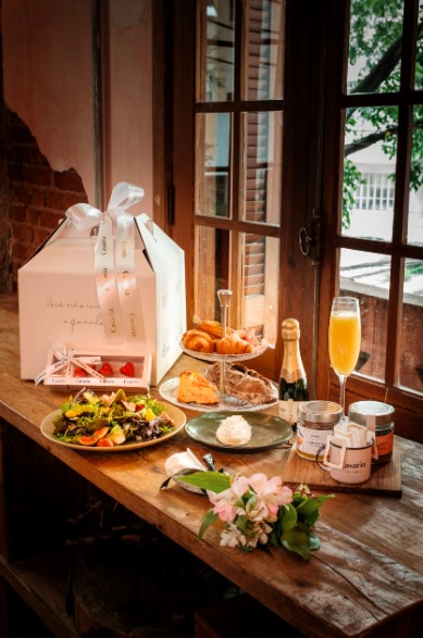 Além de ser um lugar para frequentar em qualquer momento do dia – do brunch ao happy hour, da pausa para um café à uma taça de vinho, o Casaría, oferece o serviço de cestas e para o Dia das Mães, foram feitas duas sugestões para presentear: uma para brunch e outra para café da manhã. Na cesta de brunch, está incluso: mini danish, mini croissant, baguete de nozes, sour cream, geléia caseira, salada italianinha, quiche de salmão, caixa de quatro bombons, suco de laranja, baby chandon, drip coffee e uma caneca (R$438,00). Já a opção de café da manhã conta com: croissant tradicional, pain au chocolat, brioche, baguete tradicional, geléia caseira, creme de queijo, caixa de bombom com quatro unidades, iogurte, mel, granola, mix de frutas, suco de laranja, drip coffee e casquinha de biscuit para servir o café (R$ 298,00). As encomendas podem ser feitas por whatsapp através do número (11) 3068-0778 até dia 10 de maio.