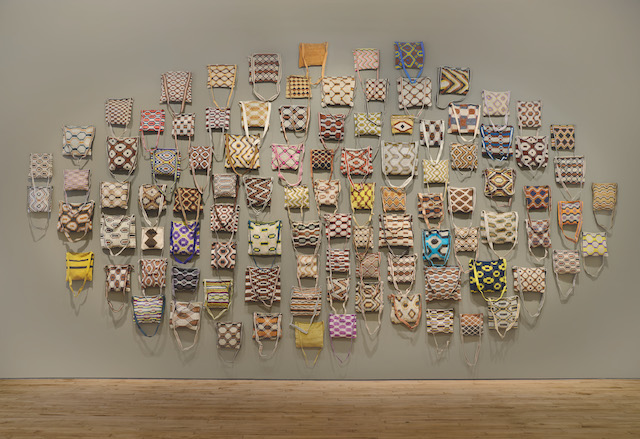 As peças são confeccionadas manualmente com fibras de chaguar, planta nativa da região do Gran Chaco, e revelam um repertório de padrões e grafismos que dialogam com elementos da natureza e da cosmologia indígena. Embora partam de objetos tradicionais, como as yicas (bolsas típicas), os trabalhos apresentados ampliam escala, cores e composições, ocupando o espaço expositivo como instalações.