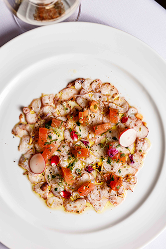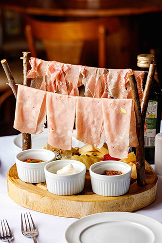 As indicações para almoço ou jantar começam em um dos itens instagramáveis e não menos saboroso para compartilhar, o o Antipasti L`Albero (R$ 89), que suspende em tira de nylon apoiada em estrutura de madeira, fatias de presunto, mortadela Italiana, salame soppressata e queijos como gorgonzola dolci e taleggio. Na base, potinhos de caponata siciliana , peperonata e manteiga aerada. Ou o Carpaccio de Polpo (polvo laminado, marinado com azeite e limão siciliano) por R$69. Dos pratos principais estão o Gnocchetti Tartufati (nhoque de batatas, fonduta de parmigiano, tartufo e amêndoas torradas) a R$77 e o Cavatelli Gratinati (massa curta, ragu de linguiça, fonduta de grana padano e mozzarella gratinada) de R$65. As opções de sobremesa incluem o Cannoli Siciliani Doc (casquinha crocante, creme de ricota, gotas de chocolate e pistache) a R$33 e a Panna Cotta All’Amarena Fabbri (flan de baunilha e cereja italiana em calda) por R$35. Além da coquetelaria, a adega impacta logo na entrada.