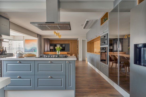 Integração dos ambientes: A cozinha foi integrada à sala, promovendo a convivência e ampliando o espaço.