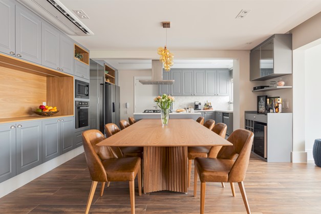 Materiais: Couro, madeira e porcelanato são sinônimo de durabilidade e beleza.