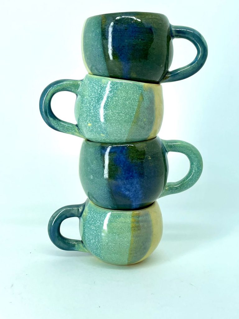 2 – BF Cerâmica, utensílios em cerâmica (xícaras) por Bernadette Figueiredo – Com uso do torno e também com placas, o objetivo da artista é criar peças utilitárias e decorativas leves e coloridas