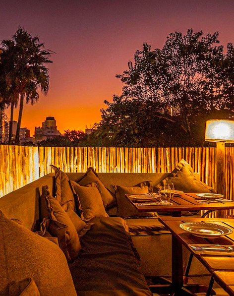 No último andar fica o Terraço Dhomus, funciona de sexta e sábado, o espaço tem 35 lugares é repleto de verde com mesas e ombrelones e com vista para os Jardins. O destaque da carta de bebidas é o Leonard, um coquetel indicado para quem gosta de bebidas mais fortes, não tão doces, leva Amaro Lucano, água tônica, limão siciliano e Vermute Branco doce (R$43).