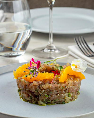 Na seção de Entradas: Couve-flor assada e creme de queijo camembert (R$ 59) e o Tartar de atum, com azeite de manjericão e laranja (R$ 65).