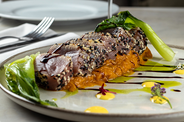 Na seção de Entradas: Couve-flor assada e creme de queijo camembert (R$ 59) e o Tartar de atum, com azeite de manjericão e laranja (R$ 65).