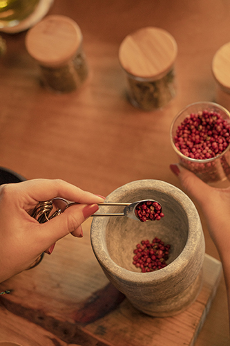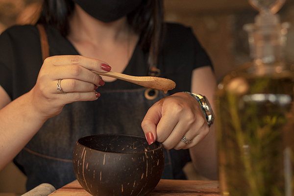 Após o exercício e já com o corpo e a mente mais relaxados, uma incrível experiência sensorial no Alchemy Bar elevará ainda mais a percepção dos sentidos por meio do olfato e do tato. Um divertido e prazeroso workshop ensinará às convidadas Six Senses a produzir um esfoliante corporal feito com produtos orgânicos colhidos diretamente dos jardins da propriedade.