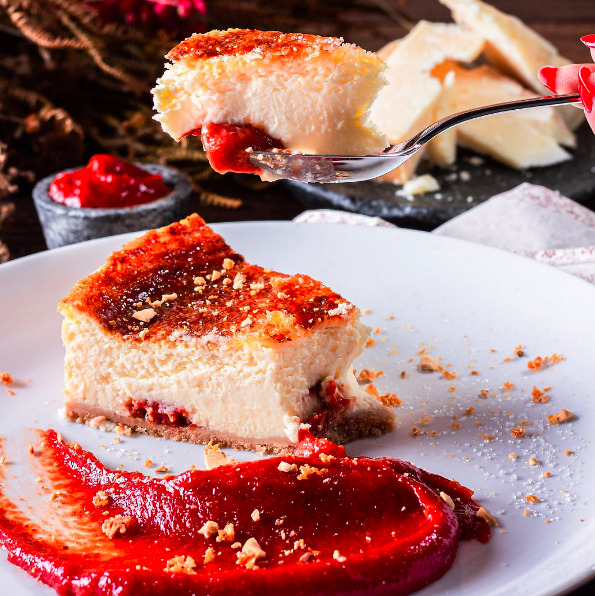 Sobremesa: Torta de queijo com goiabada cremosa ou Frutas grelhadas com creme catalão.