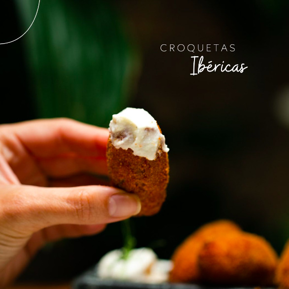Entrada: Croquetas Ibéricas ou Tostada de queijo de cabra com tomate