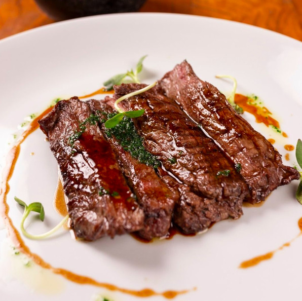 Prato Principal: Tagliata Trufada com aspargos e lascas de parmesão ou Gambas grelhadas com cuscuz marroquino, sour cream e geleia de pimenta.