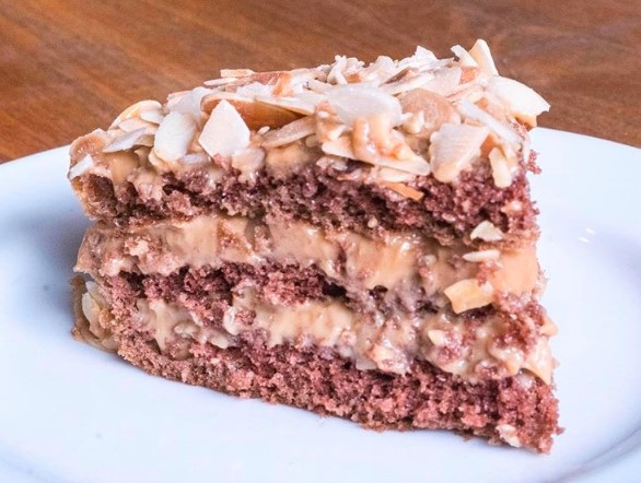 Para adoçar a noite, Bolo de doce de leite com lascas de amêndoas ou Tiramisù ao café por R$19 a fatia ou porção.