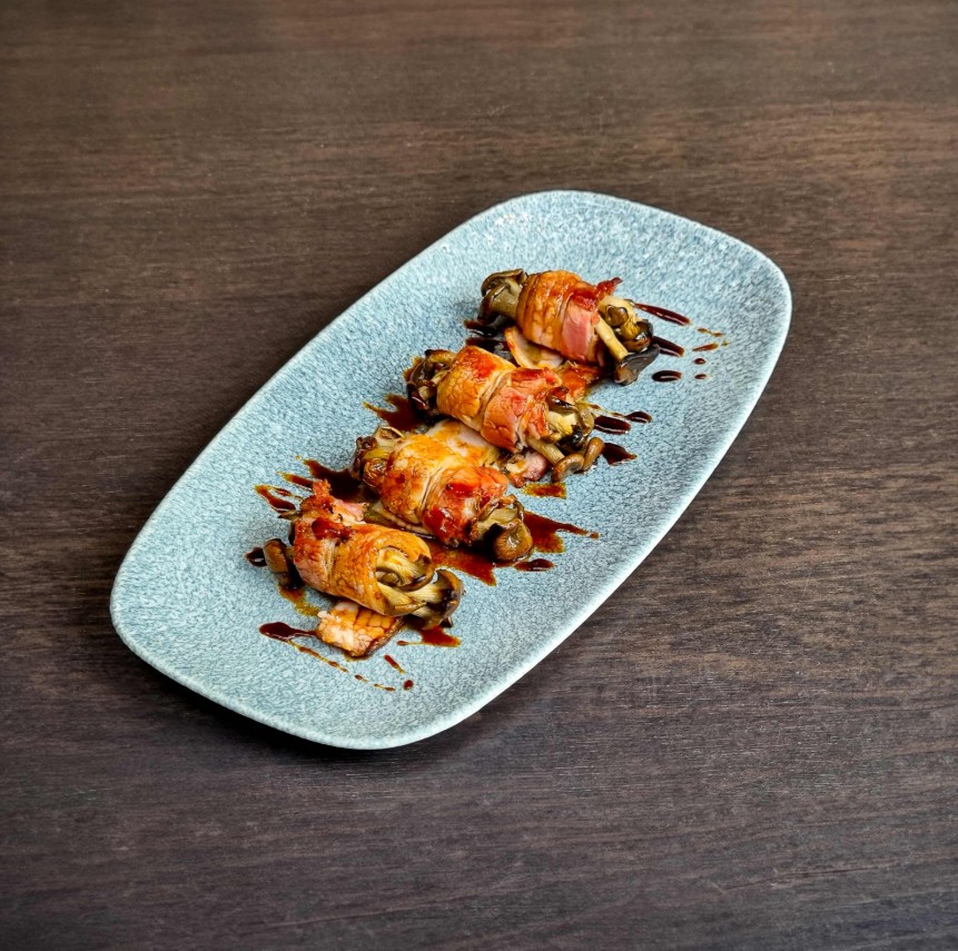 No Atsui, restaurante japonês idealizado por Roberto e Rodrigo Nakamori, a tradição se encontra com a inovação em um cardápio assinado pelo chef Hermes Takeda, que combina grelhados, defumados e sushis consagrados. Entre os destaques está o Shimeji com bacon (R$40), que une o sabor delicado do cogumelo à intensidade do bacon.