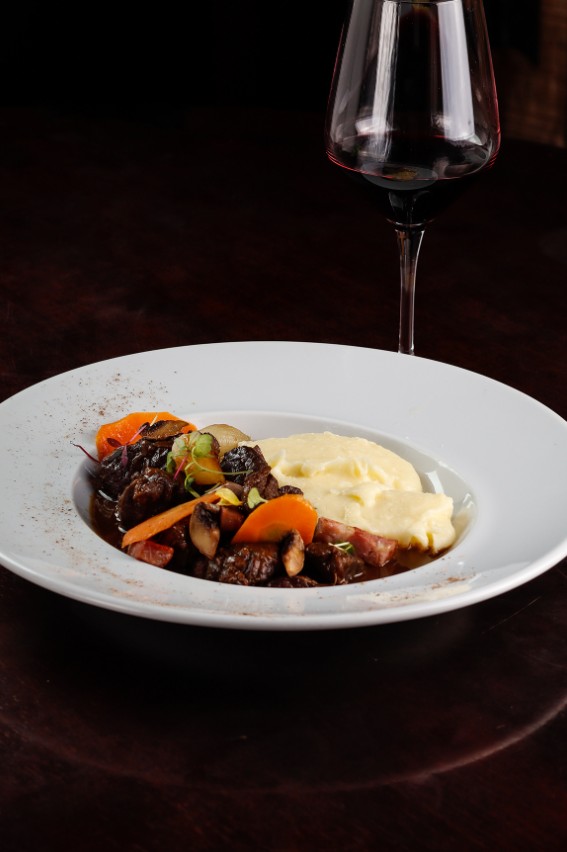 No Bistrot de Paris, nos Jardins, o sócio-chef Alain Poletto oferece uma experiência de bistronomia que combina clássicos da culinária francesa com toques autorais. Entre os destaques do cardápio está o Bœuf Bourguignon com Bacon Caseiro, Champignons e Cebolinhas (R$106), que evidencia o cuidado do chef ao preparar seu próprio bacon para valorizar os sabores do prato.