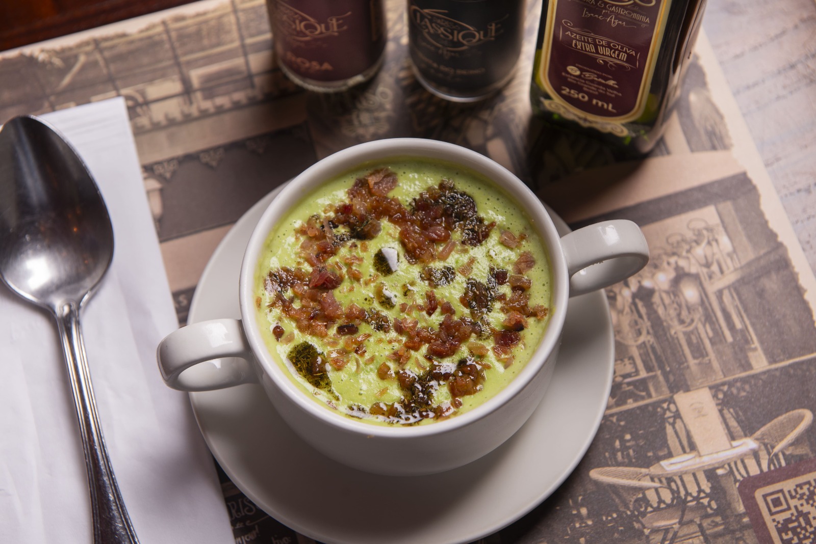 Conhecido pela atmosfera inspirada nas brasseries parisienses, o Paris 6, comandado por Isaac Azar, se consolidou com suas unidades Classique e Vaudeville, ambas nos Jardins. O cardápio extenso inclui opções sazonais, como o Crème de Petit Pois (R$43), creme francês de ervilhas finalizado com cubos de bacon, que adicionam sabor e textura ao prato.