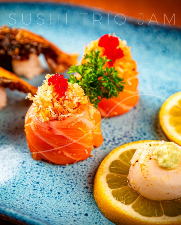 Unindo gastronomia japonesa contemporânea, arte e música em mesmo espaço, o Jam Warehouse, com unidades nos Jardins e Itaim, oferece diversas opções de sushi em seu cardápio. Dentre as sugestões encontra o Sushi Trio JAM (R$ 107 – 6 unidades) composto por dupla de vieira com foie gras, dupla de hokkigai e dupla de black cod; Niguiri de lula(R$ 32 – duas unidades); Ura spicy tuna (R$ 52 – 8 unidades) sushi tradicional enrolado por arroz por fora, gergelim e atum picante entre opções variadas opções de combinados.