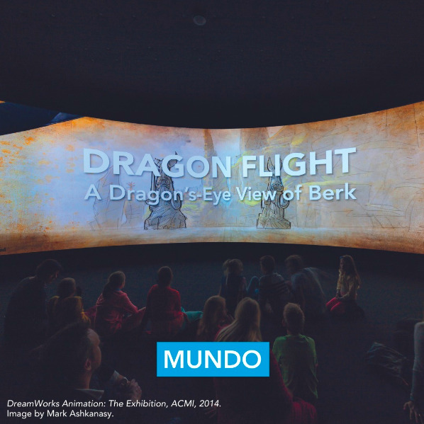 Em Mundo, a maior seção da exibição, destacam-se os mundos distintos, verossímeis e únicos criados em cada filme da DreamWorks Animation. A ala explora o trabalho colaborativo de diretores, designers de produção e artistas conceituais na criação de ambientes fantásticos, autênticos e verossímeis. Um destaque da exposição é a atração voo do dragão, uma projeção de 180 graus, arrepiante e criada especialmente para a exibição, permite que os visitantes sobrevoem a Ilha Berk e experimentem como é voar nas costas do dragão Banguela do filme Como treinar seu dragão.