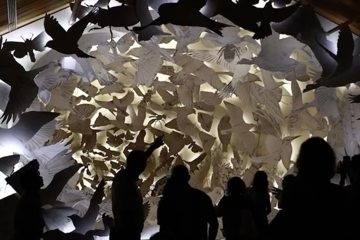 Organizada como um percurso dividido em capítulos — entre eles “Infinite Library”, “Mirror Maze” e “Co-Imagine” —, a exposição parte do princípio de que o indivíduo se constrói a partir do encontro com o outro. Ao propor experiências participativas, Devlin transforma o visitante em agente ativo das obras, criando ambientes que estimulam reflexões sobre memória, linguagem e pertencimento.