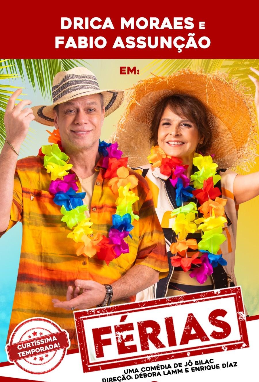 O ator Fábio Assunção e a atriz Drica Moraes estreiam no dia 7 de junho a peça Férias no Teatro Procópio Ferreira. O espetáculo, que ficará em cartaz em curta temporada, conta a história de um casal que está de férias pelo Caribe, e que enfrenta desafios que colocam a relação à dois em xeque. De Forma irreverente, driblam os percalços da viagem, em meio a reflexões filosóficas que elevam a cumplicidade entre eles . Amor, saúde mental, etarismo, consumo e sexo, são temas que pegam carona nessas férias inusitadas.