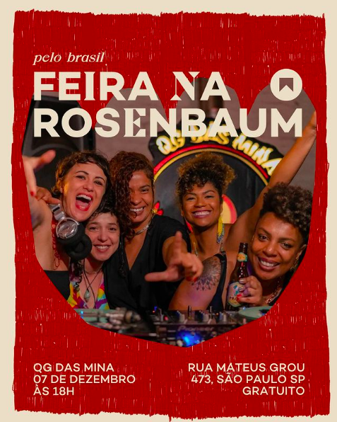 Com mais de 200 expositores em um prédio de dois andares com um espaço de 1500m², a plataforma criativa Feira na Rosenbaum realiza a Feira de Natal. De de 5 a 10 de dezembro, na Rua Mateus Grou, 473 acontece a 50ª edição de um dos maiores eventos de promoção do design independente, artesanato contemporâneo e arte brasileira. Neste evento estarão presentes produtos de design, arte, moda, bem-estar e gastronomia. De forma gratuita e inclusiva, o evento estará aberto ddas 11h às 20h.