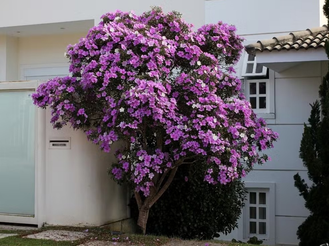 Árvore ornamental de flores que mudam do branco ao lilás e depois ao roxo. Pode ser cultivada em vasos grandes ou pequenos jardins, atraindo borboletas e abelhas. Dica: posicione na entrada da casa ou em varandas amplas para maior impacto visual.