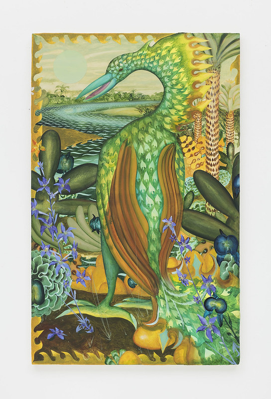 Sobre seu processo criativo, Novelli comenta: “A minha pintura parte de um estado mental de fascínio, de mistério. A partir de um fundo imaginário universal relacionado ao que é tropical, ao que é místico, ao que é paradisíaco, brutal, eu me deparo com diversas imagens, desde um monumento de pedra da Mesopotâmia até um mito amazônico ou o imaginário de um bestiário medieval. Tudo isso forma um banco de dados de onde extraio essas referências e elaboro uma síntese pessoal, que levo para a pintura.” Para o curador Thierry Freitas, que assina o texto crítico, “as imagens de Novelli resultam em figurações de um meio ambiente sinestésico e fantástico, cada vez mais influenciadas pelas vivências recentes do artista na floresta amazônica e junto aos povos originários. Desde 2017, ele se aproximou do coletivo de arte indígena MAHKU, grupo de artistas Huni Kuin, cuja pintura se constitui principalmente por representações das tradições e histórias desse povo, além de traduções visuais das mirações provocadas pela cerimônia do nixi pae, com o uso do chá de potencial psicodélico conhecido como ayahuasca.”