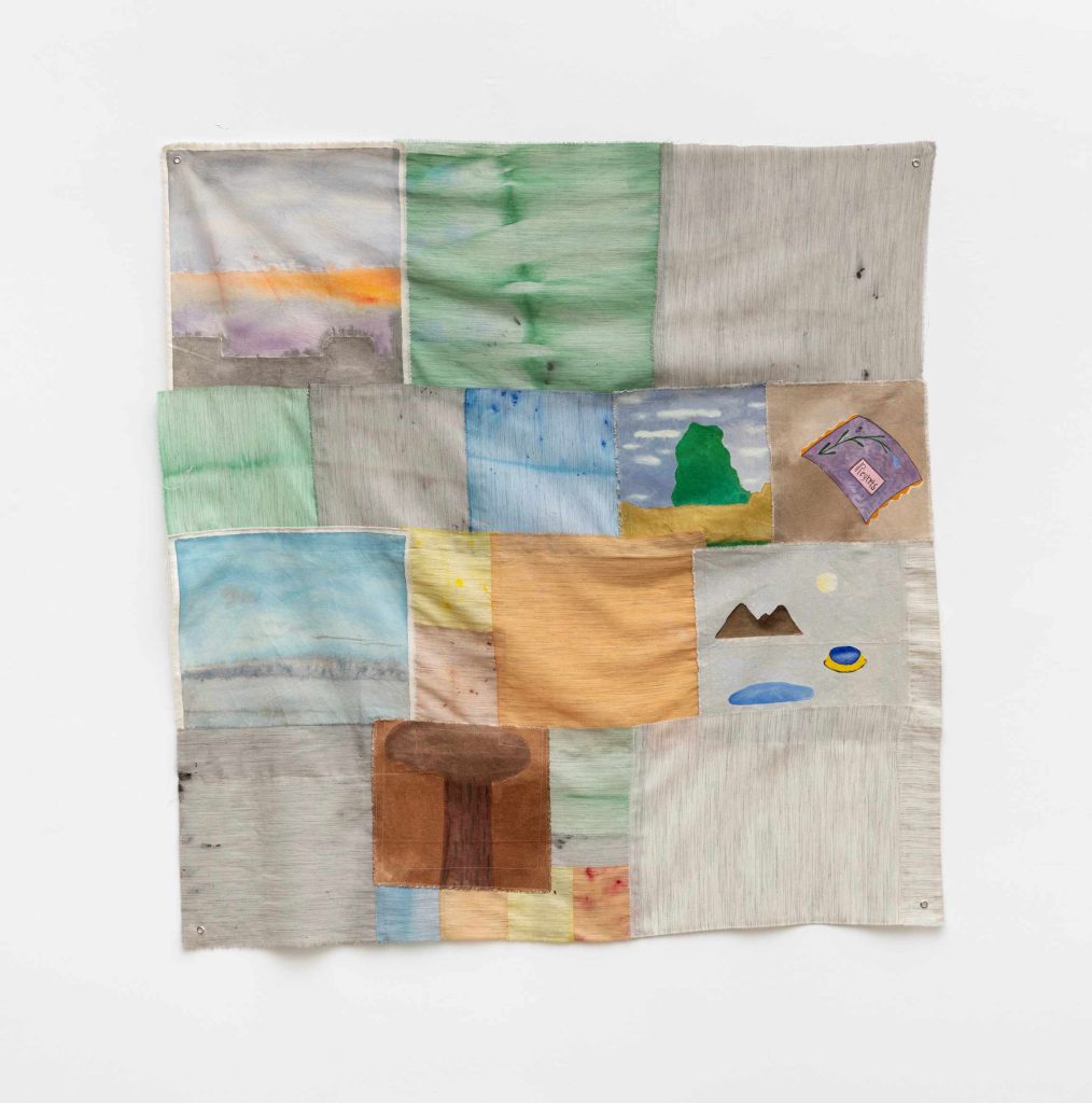 A exposição inclui ainda trabalhos colaborativos inspirados no bojagi, tecido tradicional coreano utilizado para embrulhar e transportar objetos. A partir dessa referência, as artistas produzem composições em aquarela e guache sobre algodão, que evocam colchas de retalhos organizadas em estruturas cromáticas e geométricas.