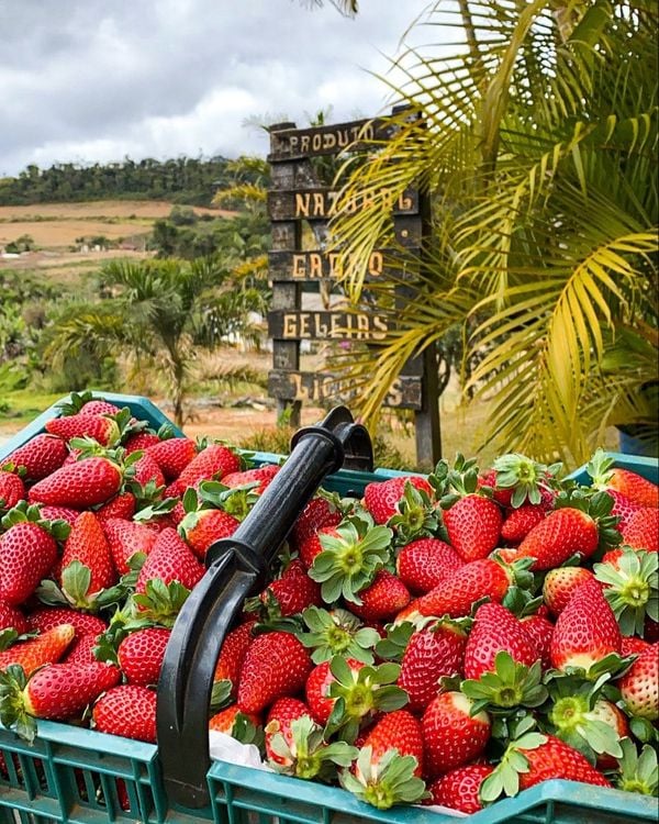 A estufa de 3.000 metros quadrados abriga mais de 20 mil mudas de morangos, importadas da Espanha e do Chile, dispostas em 40 corredores, proporcionando uma experiência imersiva. O passeio custa R$ 40,00 por pessoa, com direito à colheita e consumo à vontade. Além disso, os visitantes podem levar os morangos colhidos para casa.