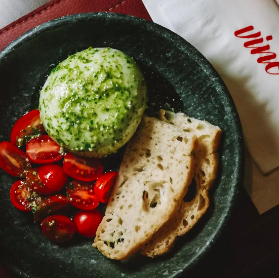 Entre as entradas para compartilhar, Burrata! R$65 (cremosa e temperada com azeite, flor de sal e pimenta preta, servida com tomates cereja e pesto, acompanhada por pão artesanal) e Brie com Mel e Amêndoas Tostadas R$45 (Queijo Brie assado no forno com mel, morangos e amêndoas tostadas, acompanhado pela focaccia da casa).